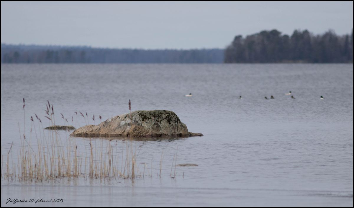 | 22 februari. Stenen vid Hökaudden. Vattennivån stiger! |