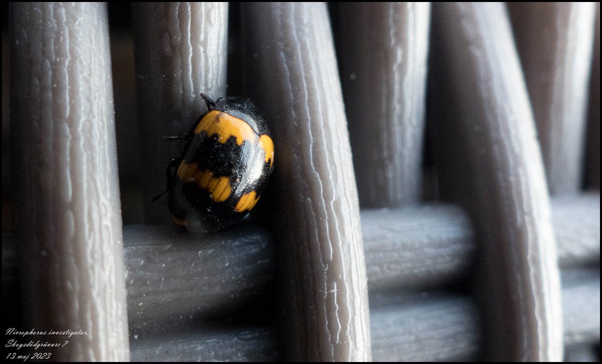 Nicrophorus investigator, Skogsdödgrävare. Den fanns på vår balkong |