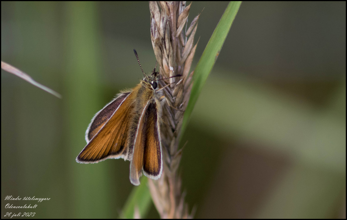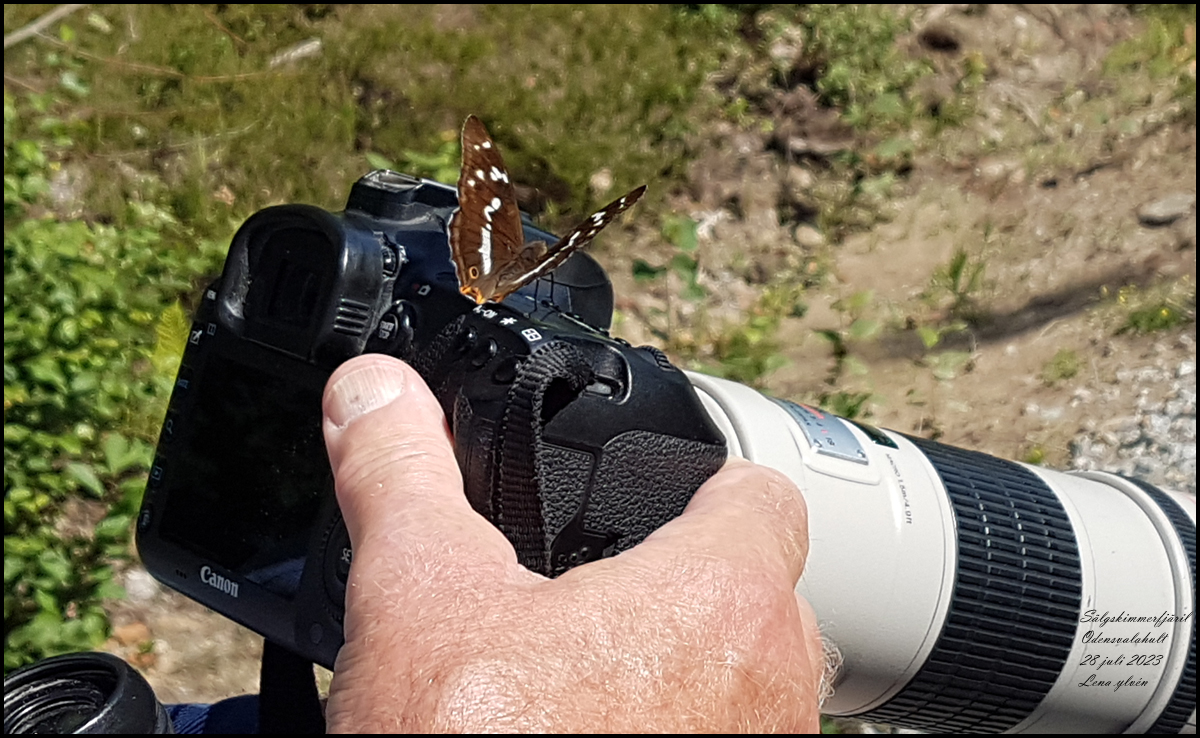 | 28 juli. Idag har vi sett en del fjärilar. Intressantast var nog den sälgskimmerfjärilen som satte sig på min kamera så att jag inte kunde ta någon bild på den. | |