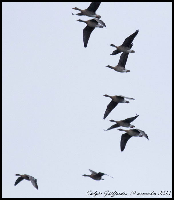 | 19 november. Sädgäss på väg söderut över Jätfjorden. Tekniskt ingen bra bild men så kan det bli när man är slarvig. |