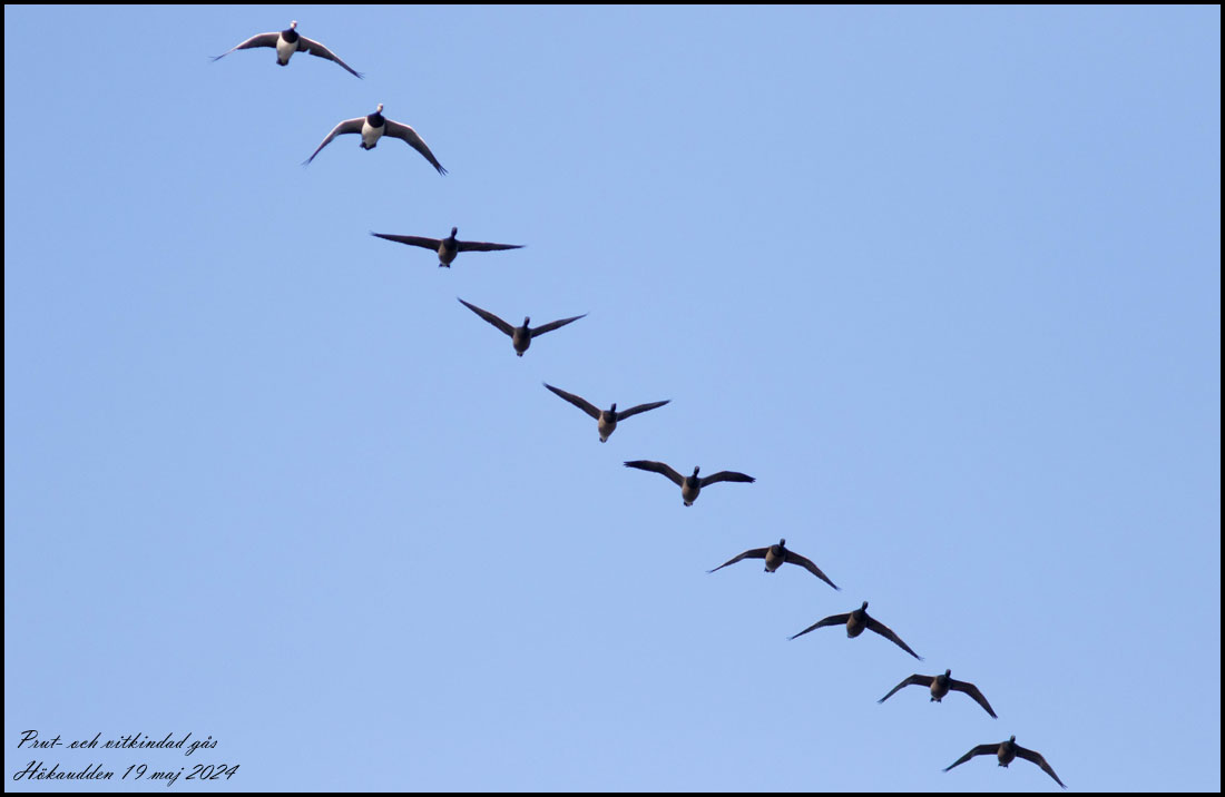 | 19 maj. Prutgås och vitkindad gås i blandade flockar. |