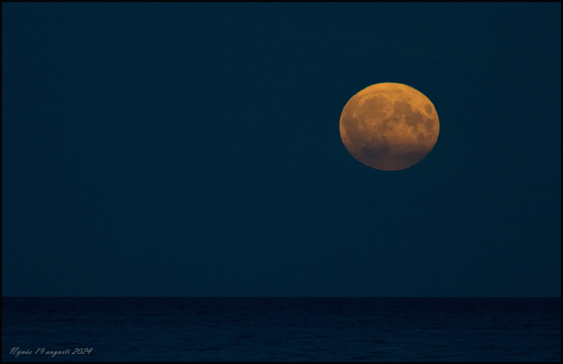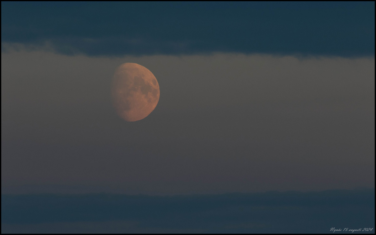 | 15 augusti. Lågt stående måne vid Mörby udd |