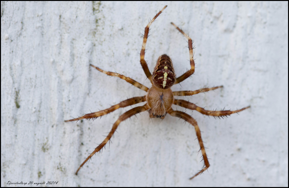 | 20 augusti. Korsspindel på husväggen vid Djurstadtorp |