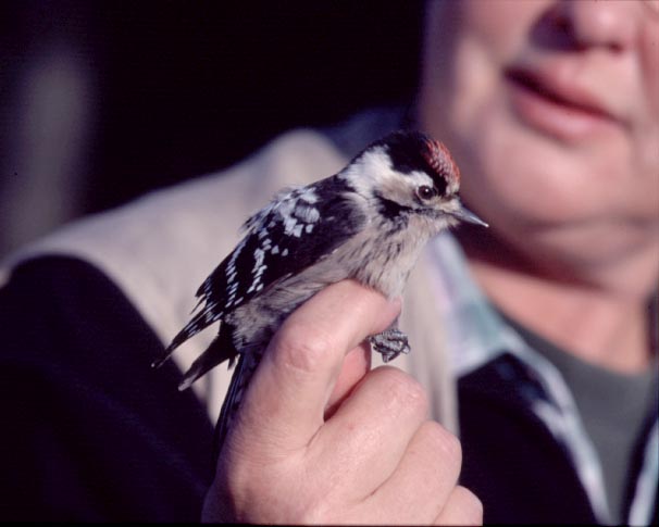 Mindre hackspett fångad för ringmärkning