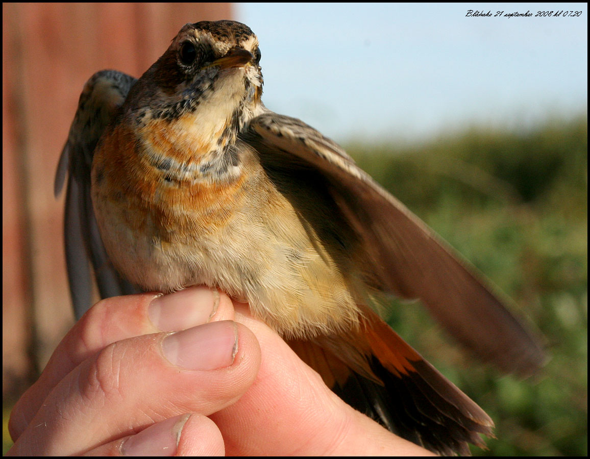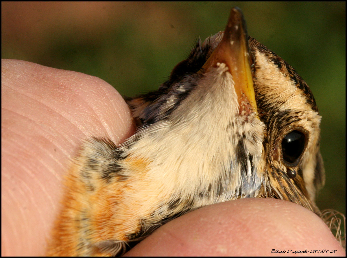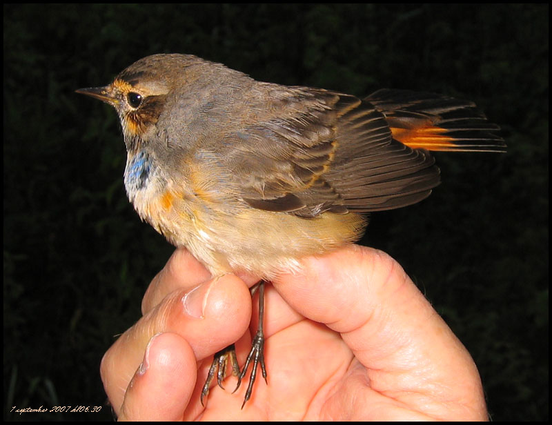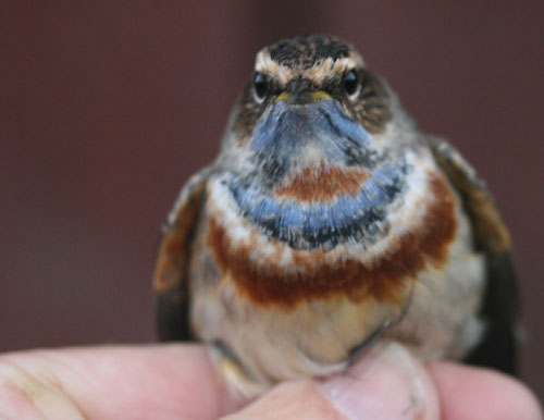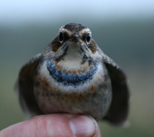 Blåhake fångade för ringmärkning Foto Roland Ylvén Urshult roland.ylven5€telia.com START |