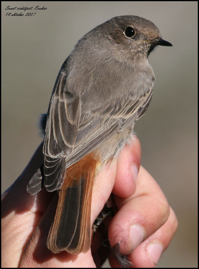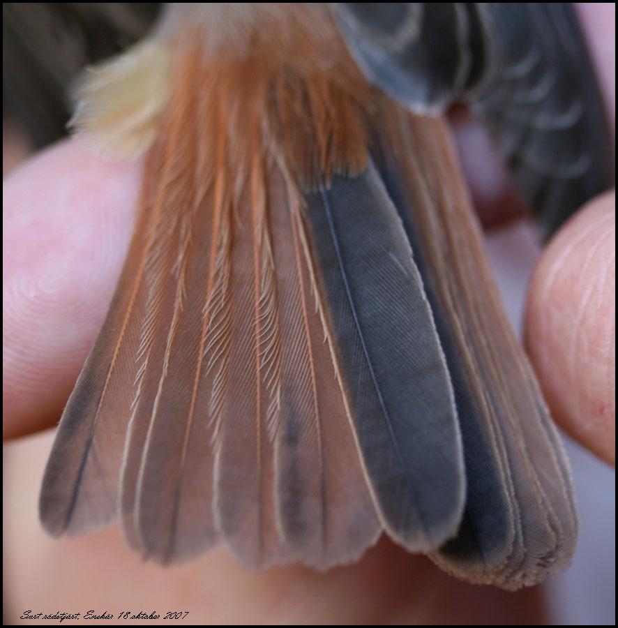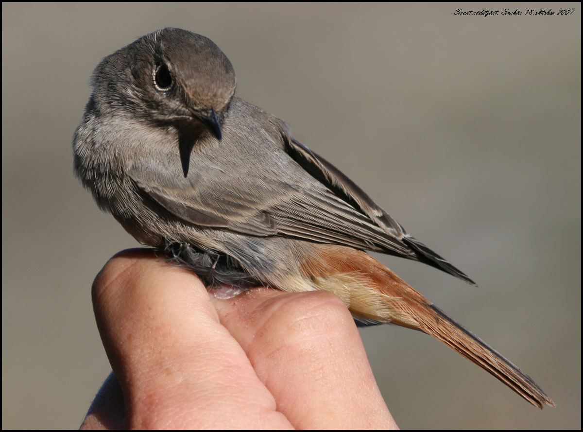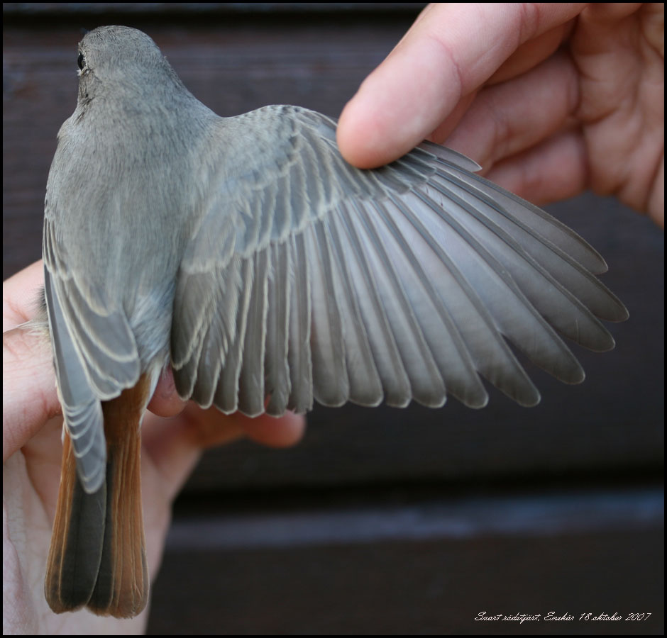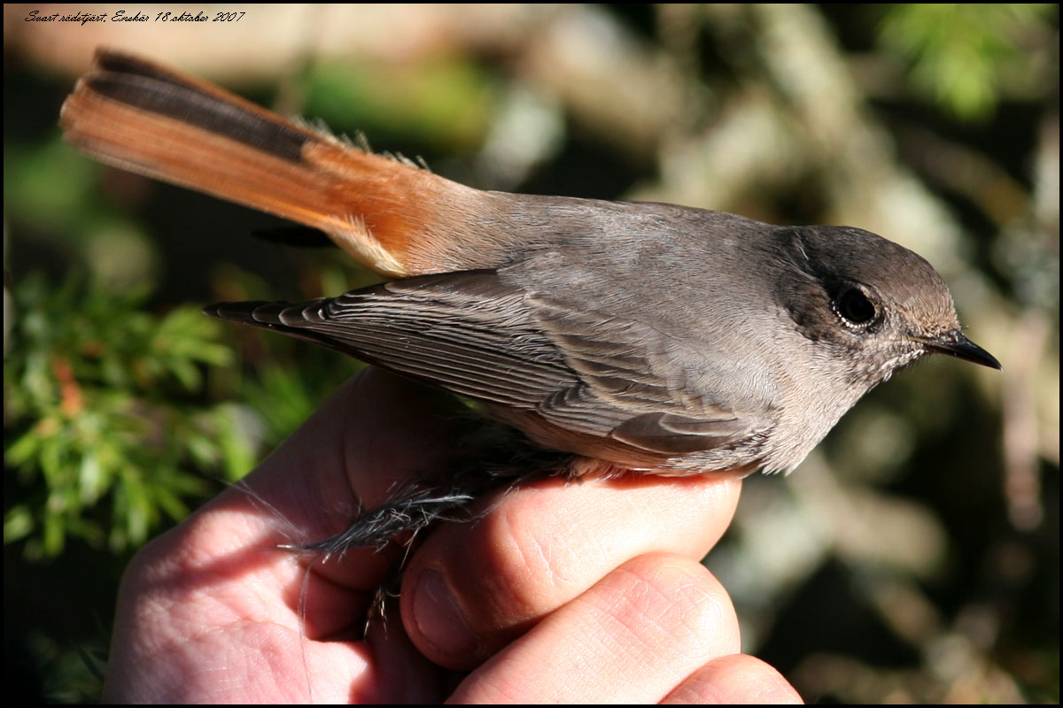 Svart rödstjärt fångade för ringmärkning Foto Roland Ylvén Urshult roland.ylven5€telia.com START |