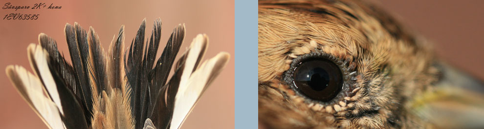 | Sävsparvar. De övre bilderna är en 1k med stjärtpenna 5 spetsig. Iris ska inte ha en någon brun touch men det är svårt att visa i ett foto där ljus och vitbalans inte är konstant. |