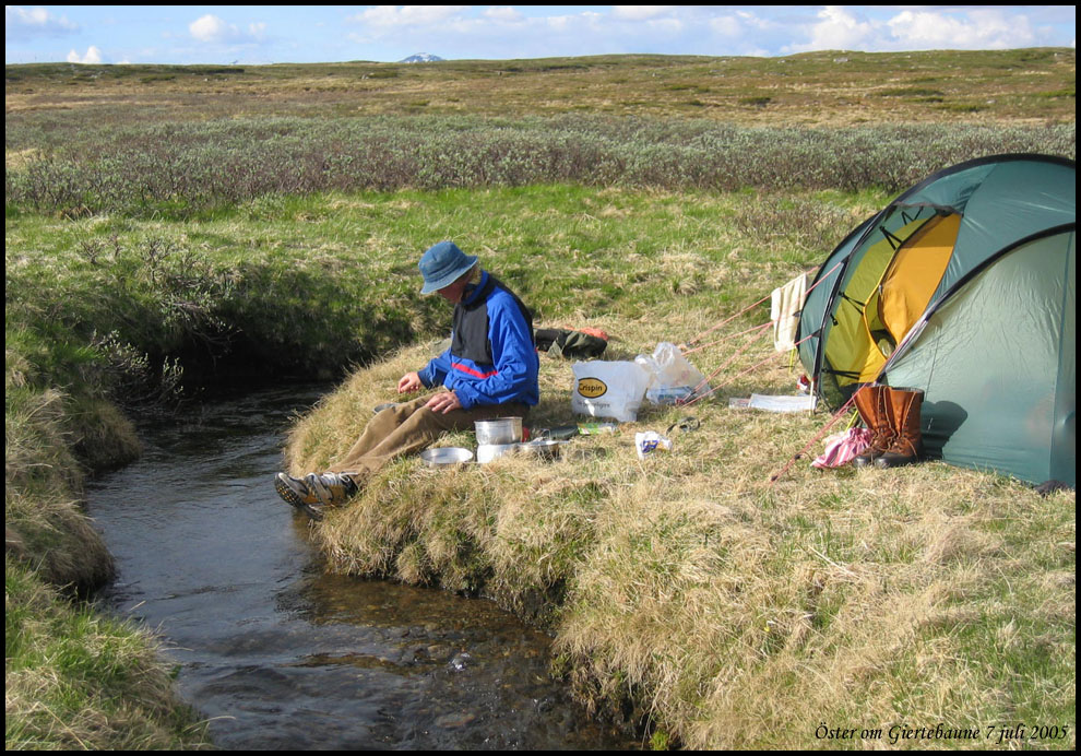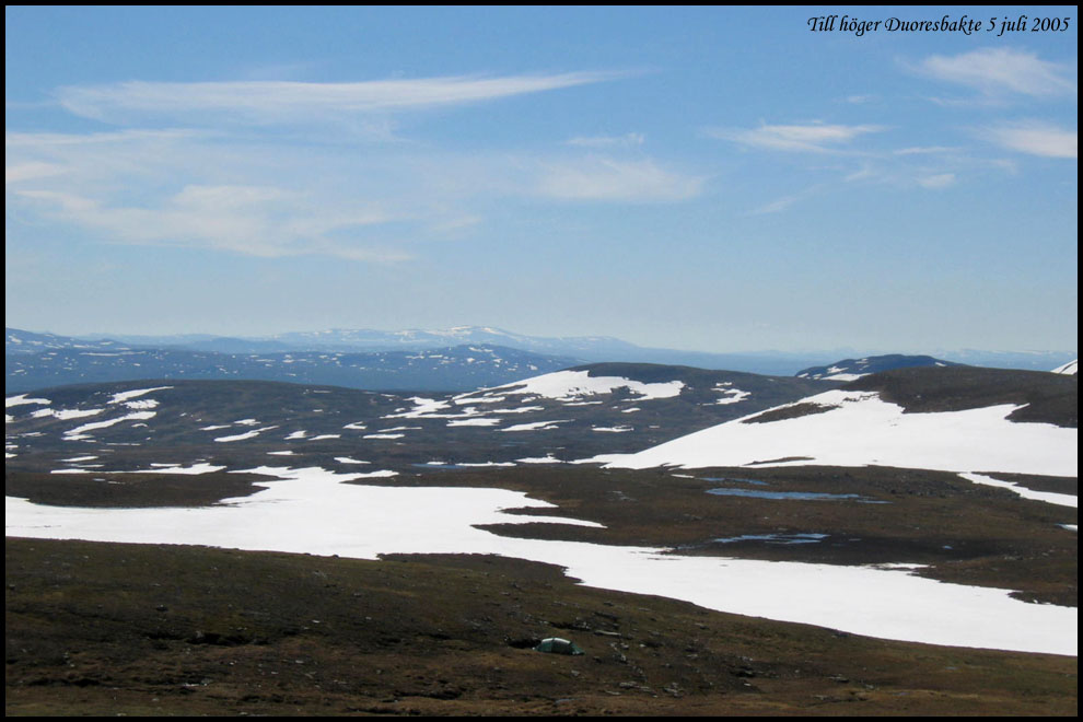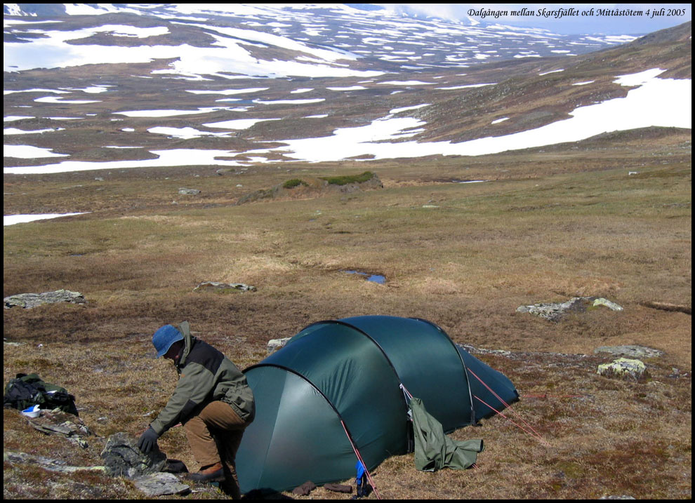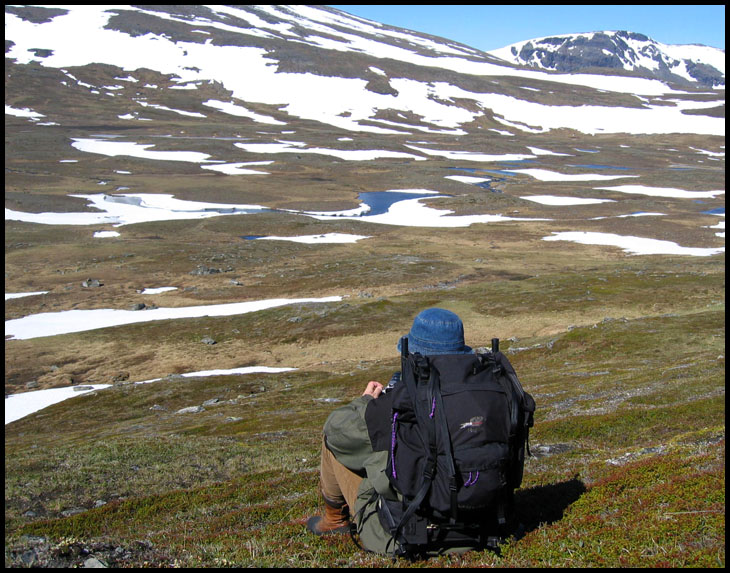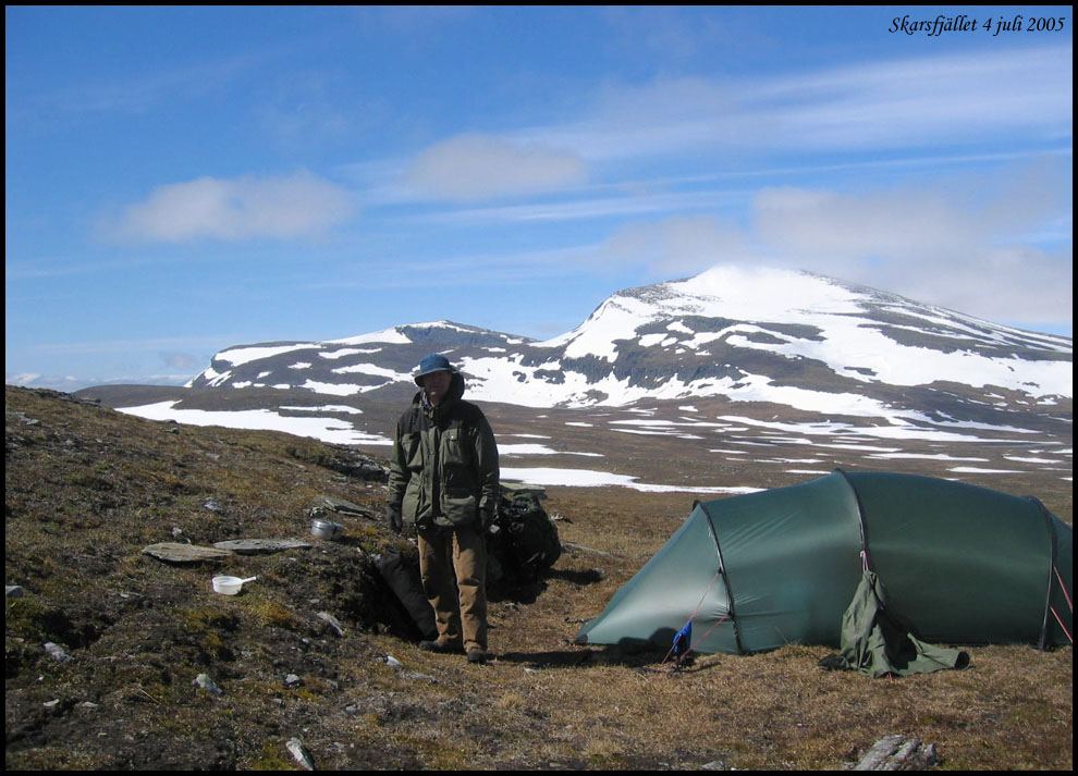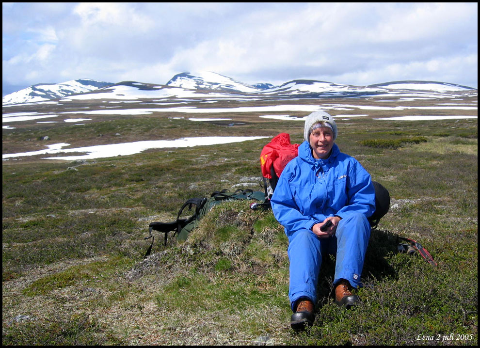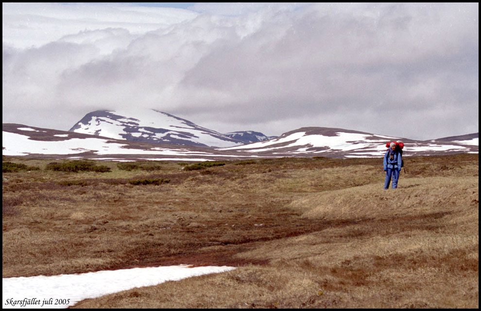 | Vi har fjällvandrat i nordligaste Härjedalen i juli 2005. Bilderna har tagits med en Canon Ixus kompaktkamera och en analog Canon AE1. Om jag inte minns helt fel har jag använt negativ färgfilm som sedan scannats i en Minolta filmscanner. |