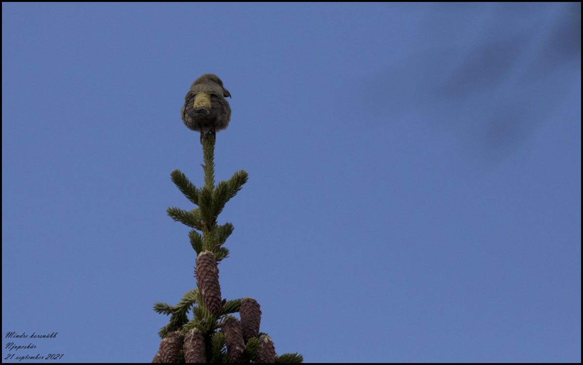 En flock på ungefär 30 mindre korsnäbbar kunde vi se. Vi hörde dessutom tretåig hackspett och spillkråka och skrämde upp en tjädertupp. Borta vid ån kom några tofsmesar och talltitor förbi. |