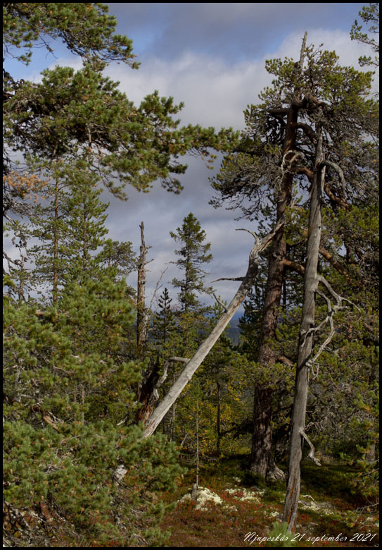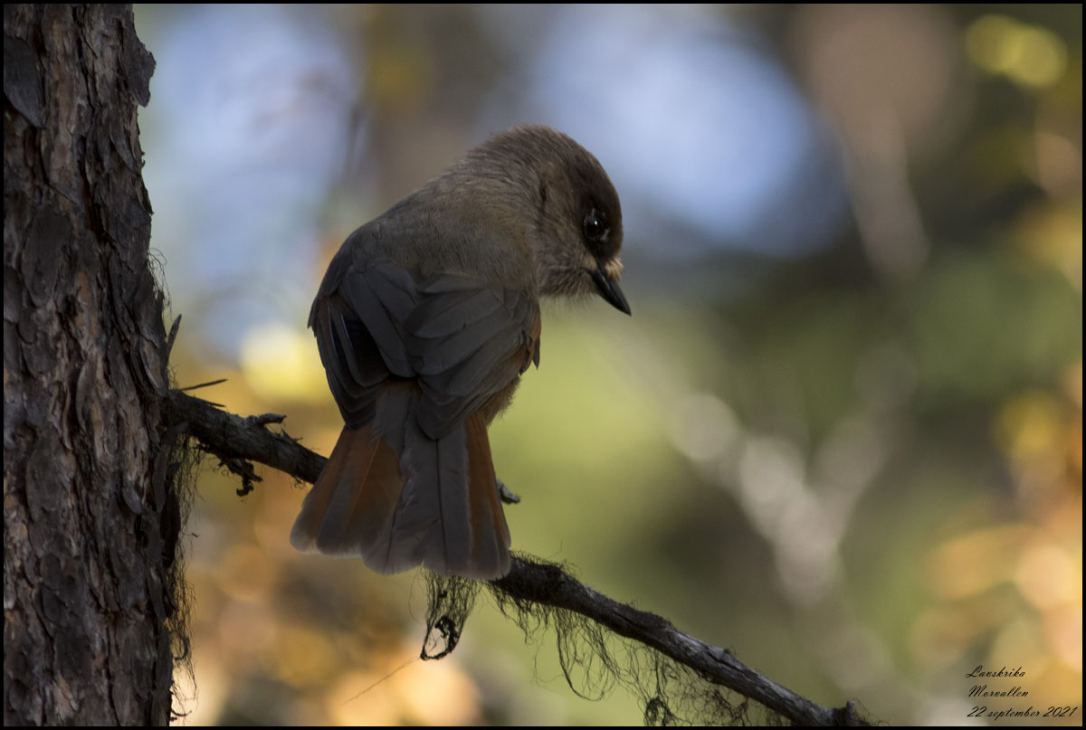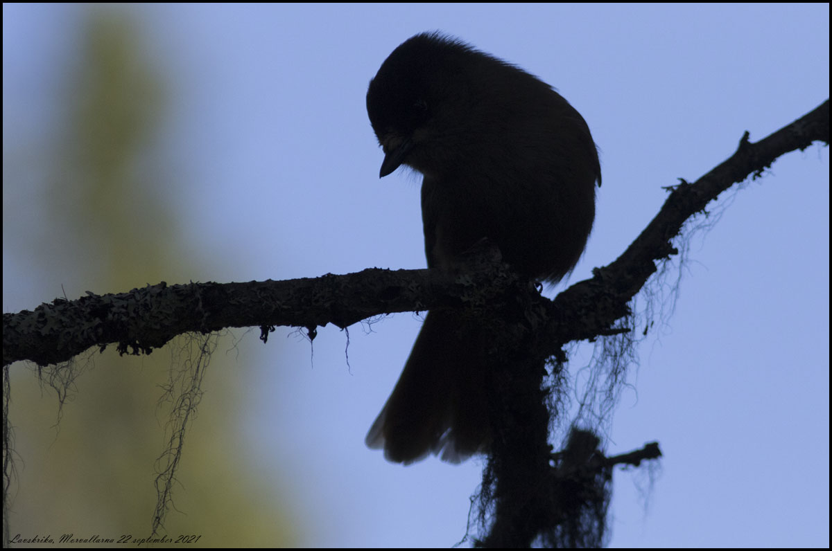 22 september. Morvallen norr om Hållan är ett skogsområde som gränsar till fjället. Här hittade vi lavskrikor som vi matade. |
