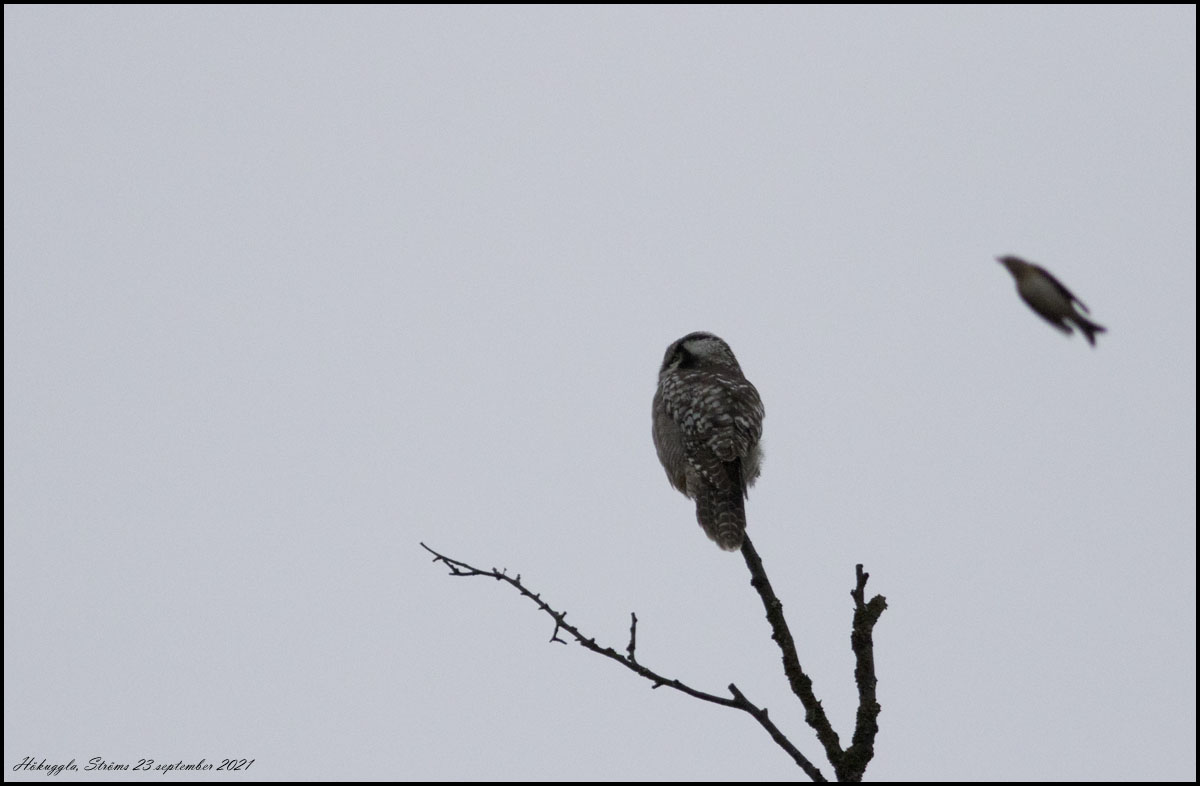 En hökuggla kom rätt över mig sydost om Kuppvallen. Suddig bild men intressant ändå. |