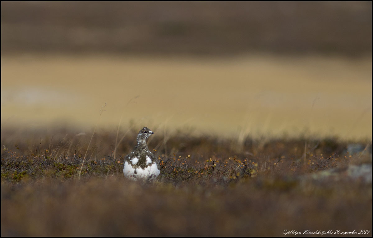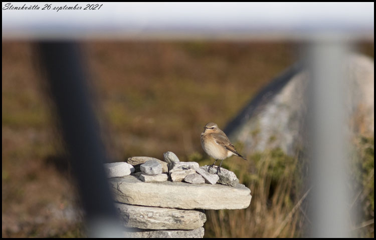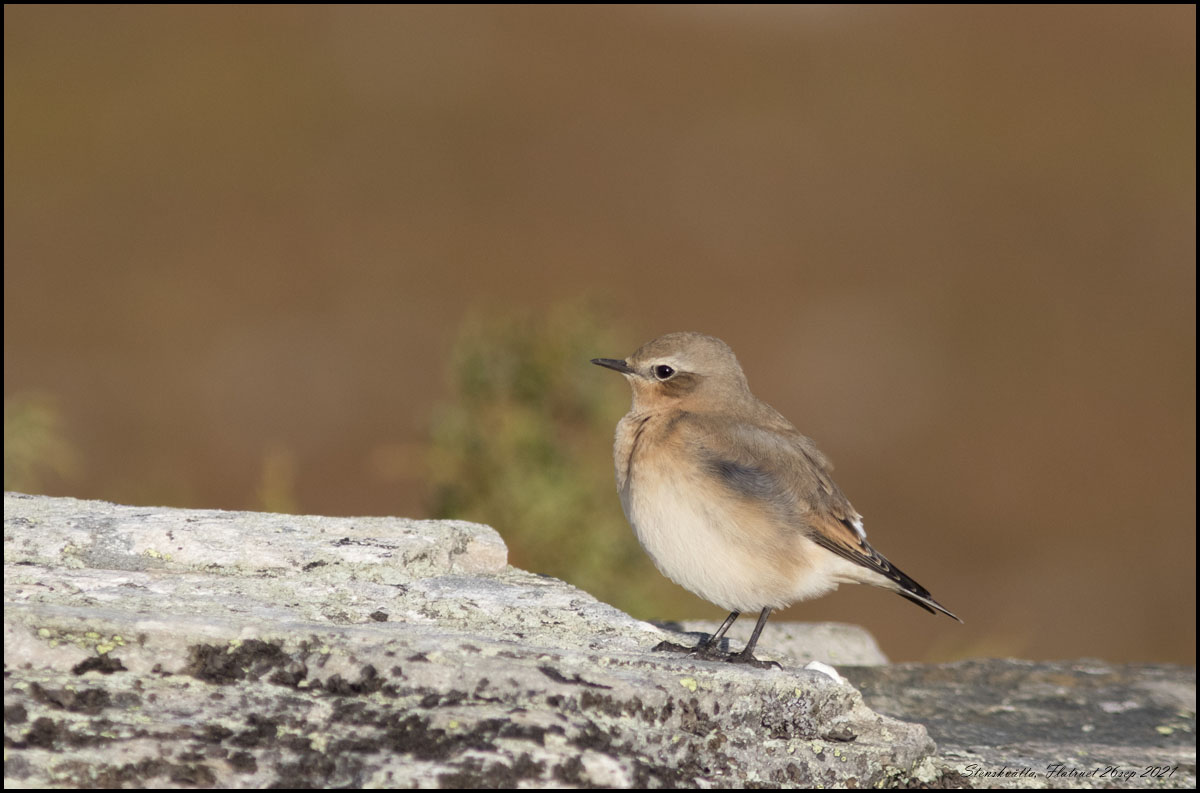 | 26 september. Vi har varit på Flatruet idag. En sen stenskvätta höll till uppe vid parkeringen. |