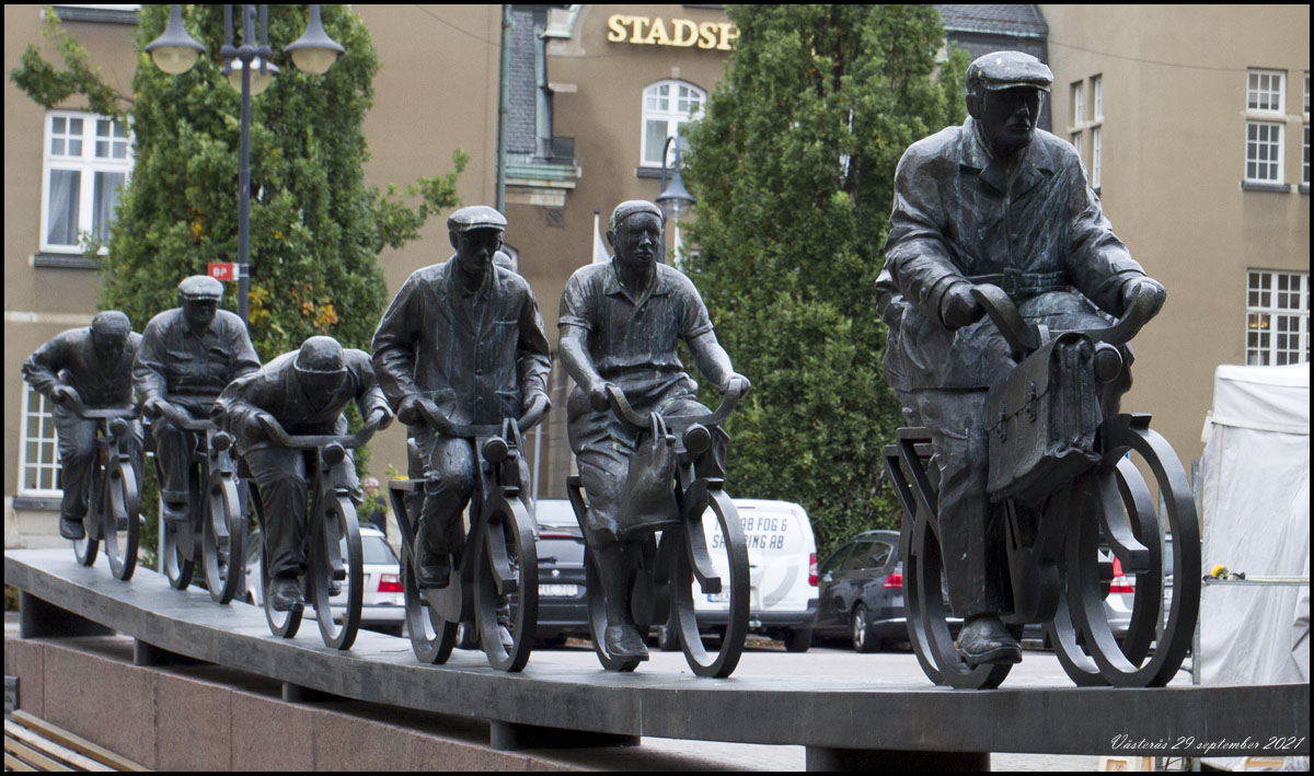Här finns statyn med gubbarna som cyklar till jobbet. |