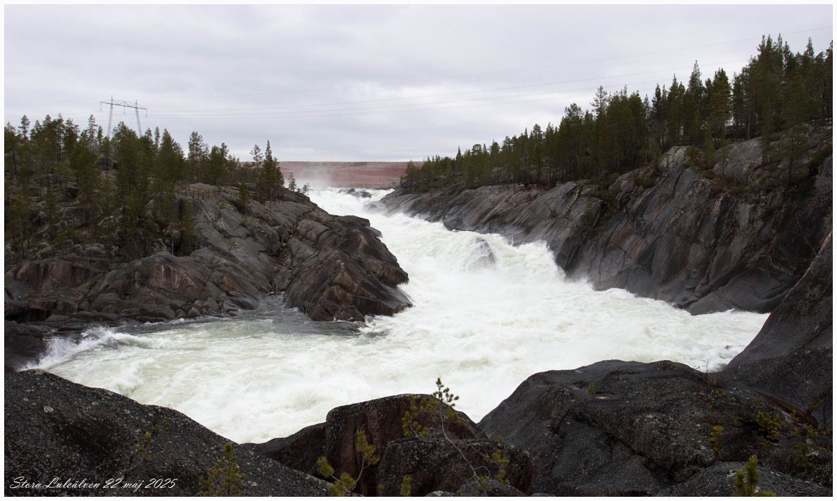 | Stora Luleälven nedanför dammen i Messaure. | |