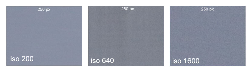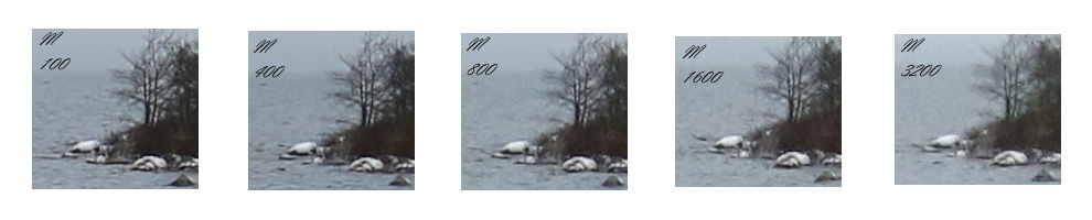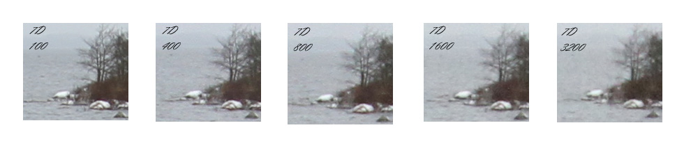 Ännu ett test av brus. Fem bilder den här gången med ett utsnitt på 150 px. 7D mark II har något fler pixlar, 20 Mpx (5472 x 3648) därför blir bildytan mindre. |