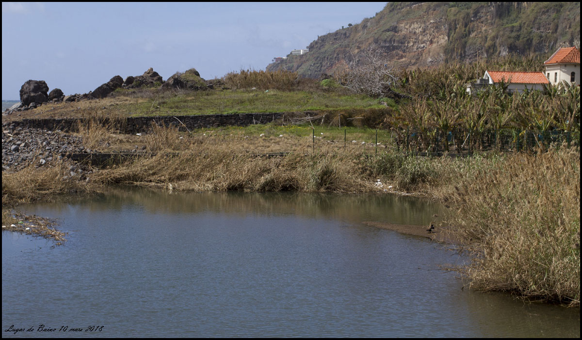 in mot stranden. Bakom vassen till vänster finns en damm som enligt