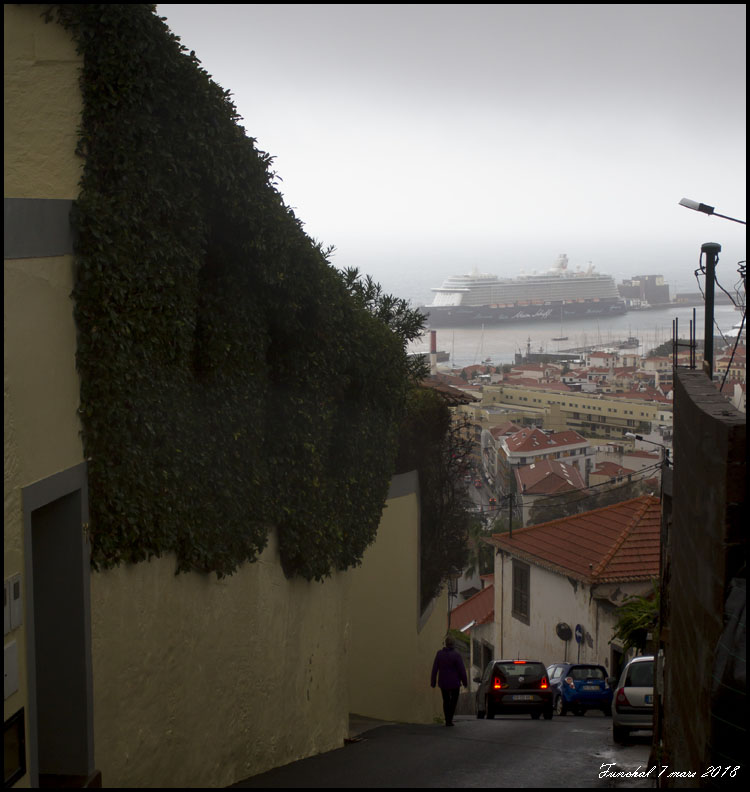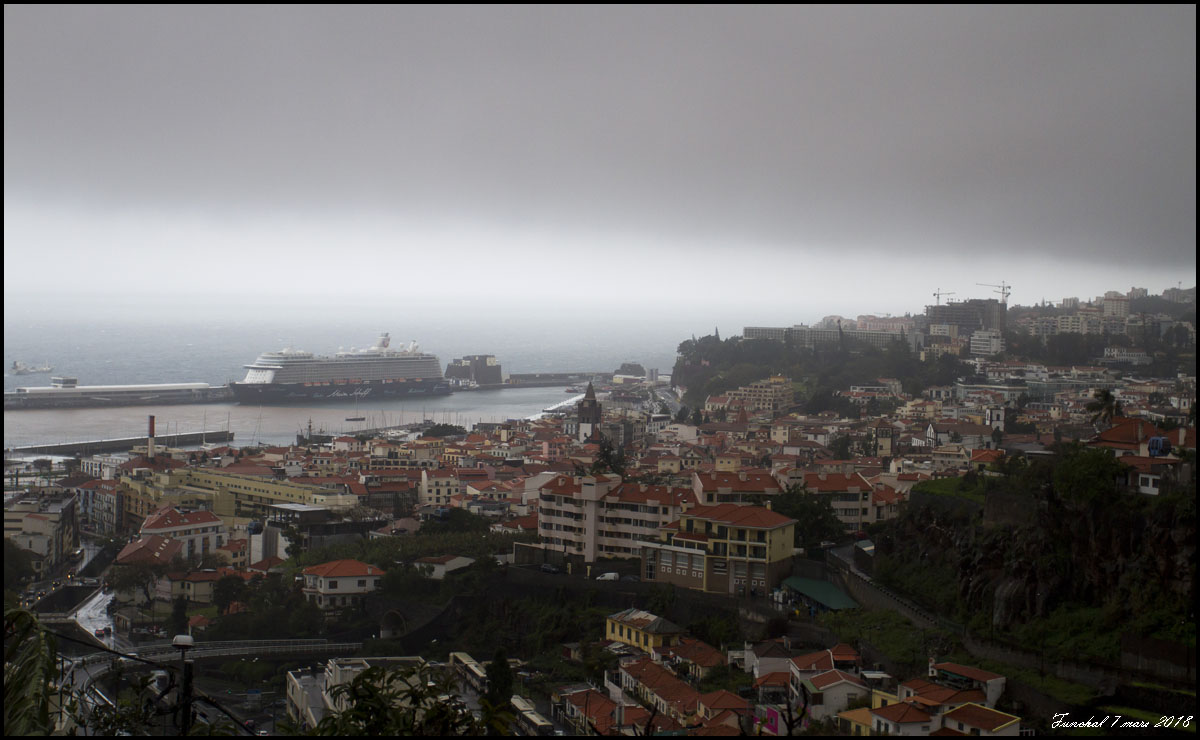 Gråa moln med regn över Funchal. Halvvägs upp till Botaniska. |
