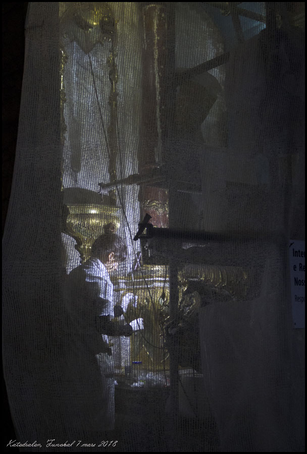 | Vi besökte katedralen i stans centrala del. Renoveringsarbete utfördes bakom ett skyddsnät. |