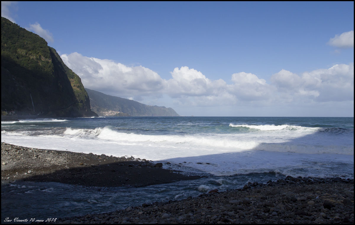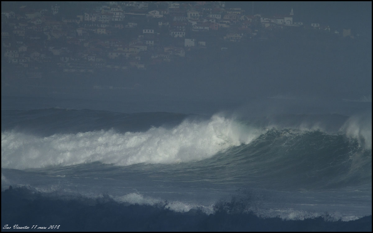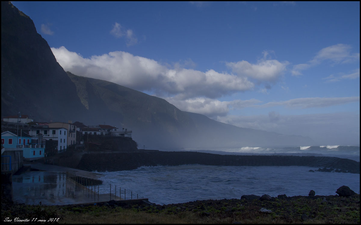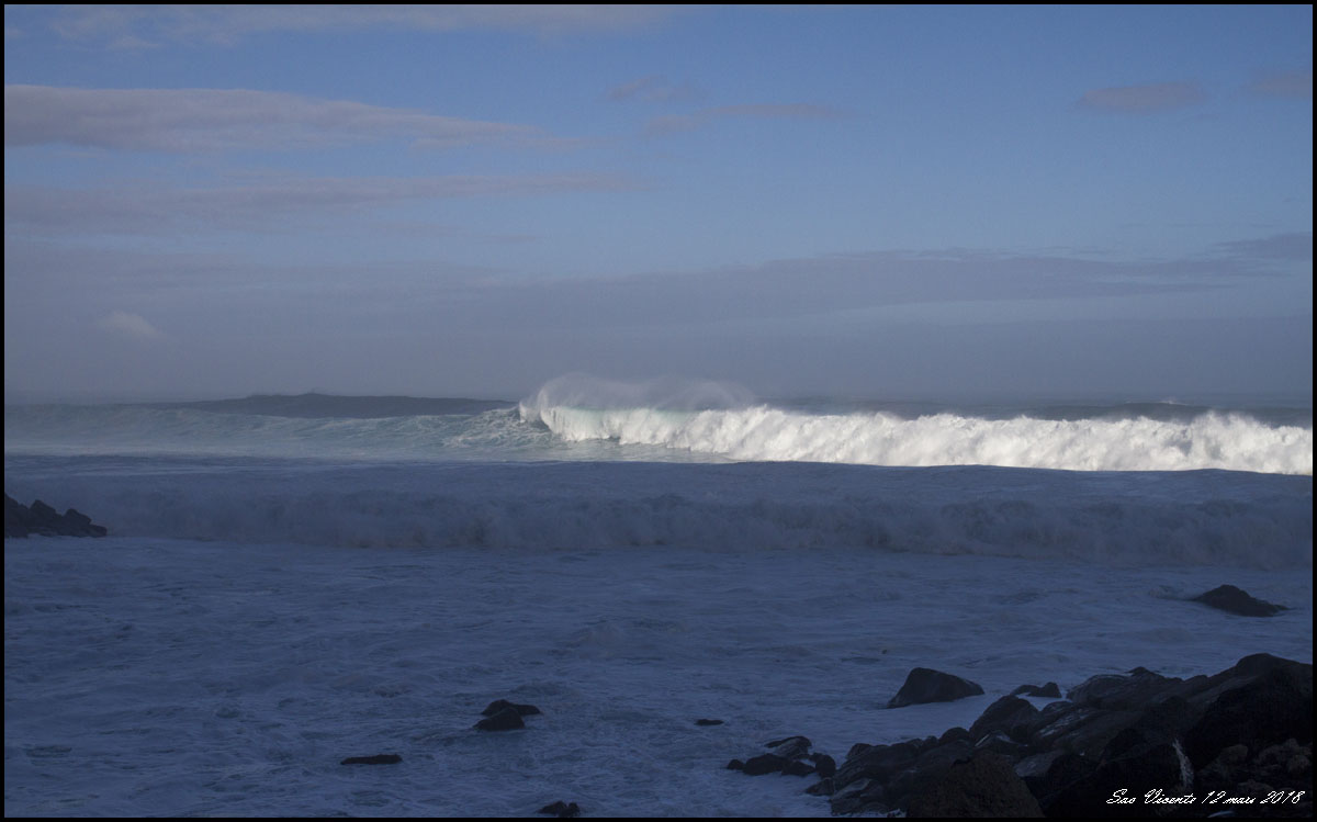 När vi passerade Sao Vicente för andra gången ett par dagar senare bröt mäktiga vågor in över kusten |