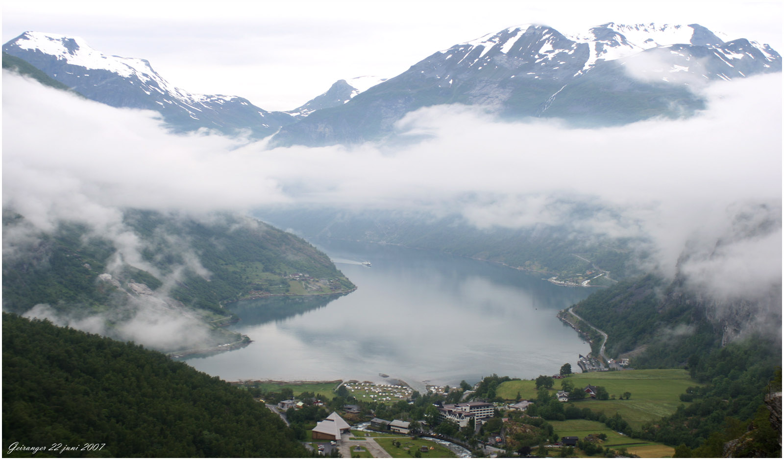 nivån och kommer ner till havsnivån i Geiranger.