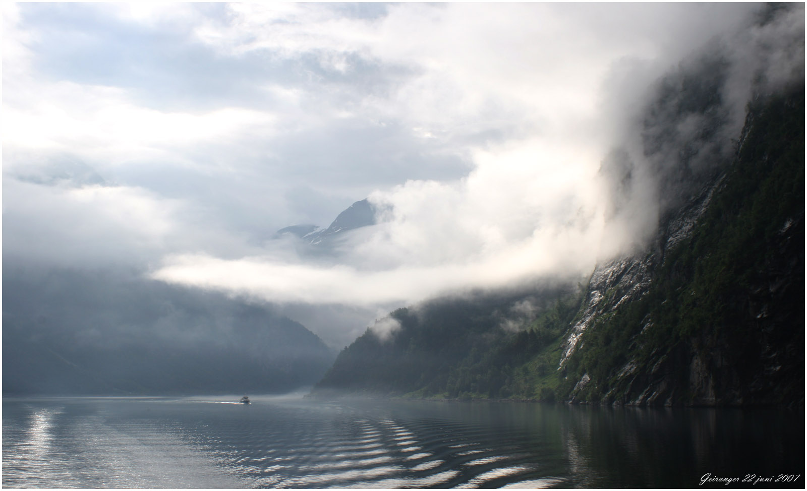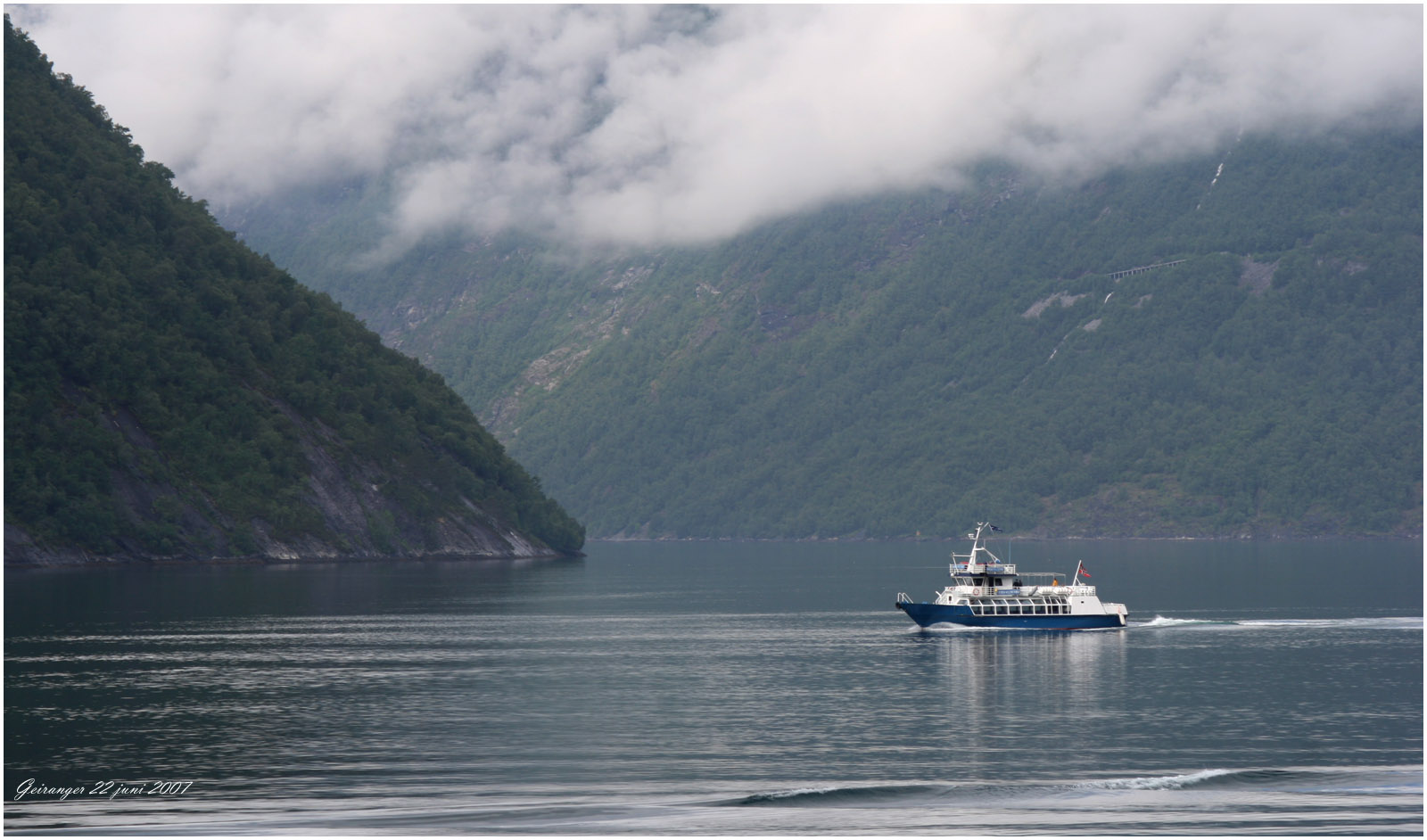 från Geiranger till Hellesylt tar dryga timmen. Båten är full av