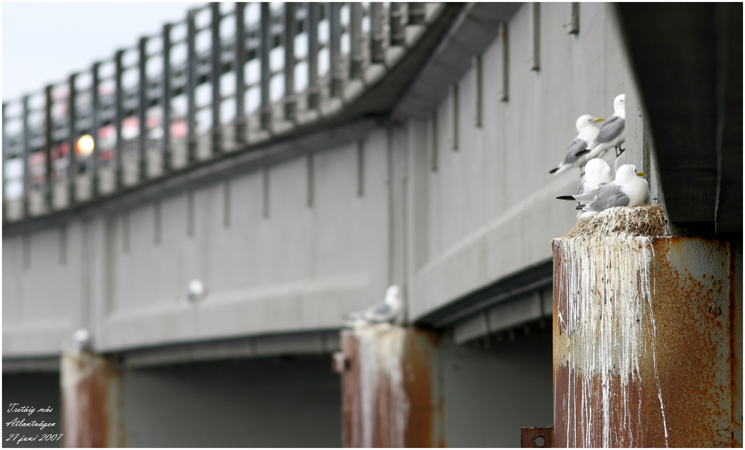 tretåiga måsarna hade sina bon på brofundamenten. Varje bropelare