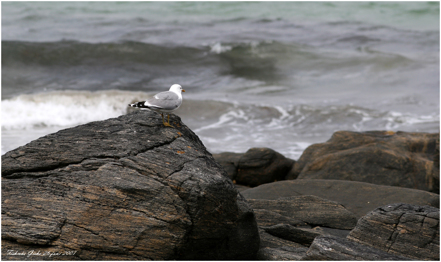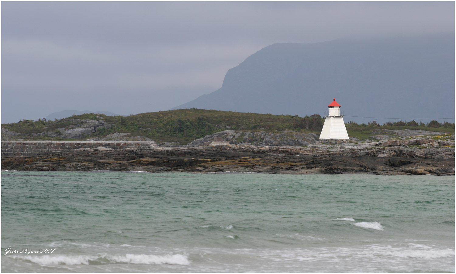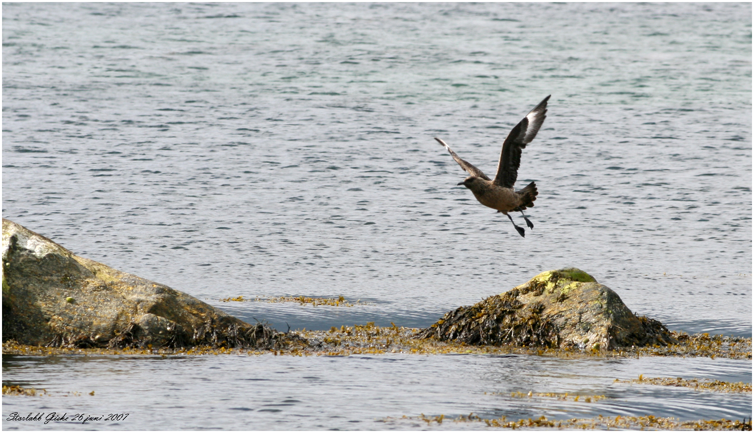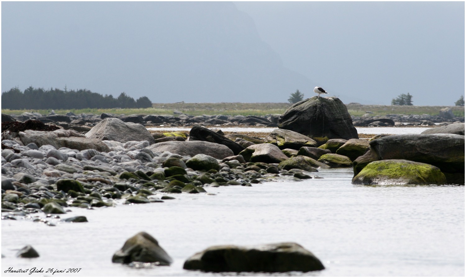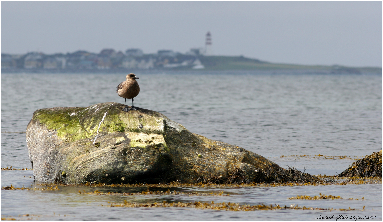 Makkevika fanns också en storlabb som poserar på en sten med Alnes fyr