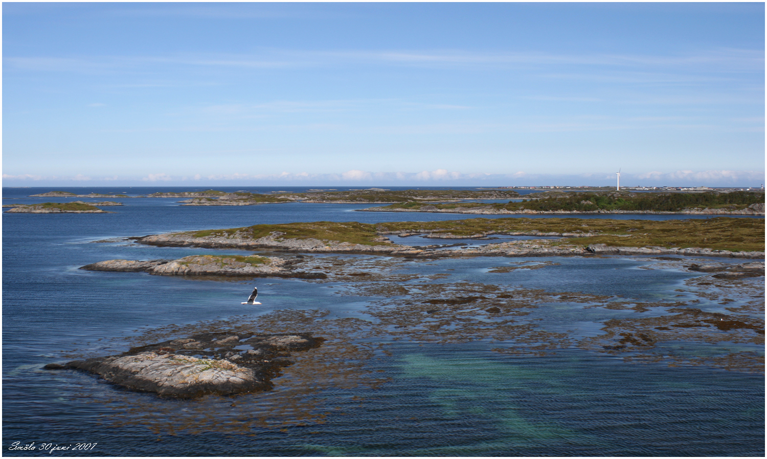 var också vanlig. I bakgrunden anar man vindkraftverken på Smöla.