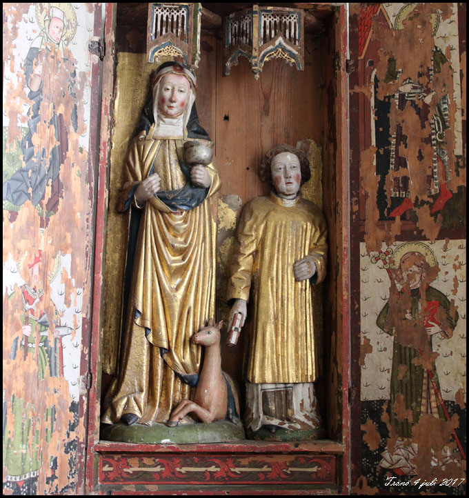 skåpet framme i kyrkan. De föreställer S:ta Katarina av Vadstena och