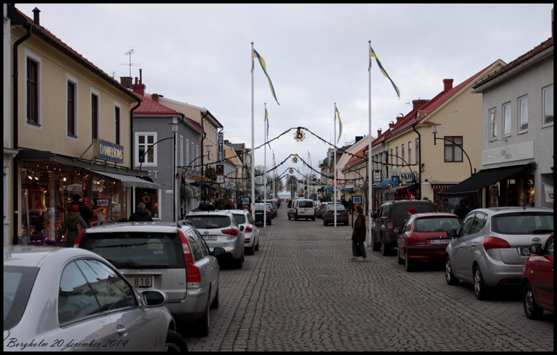 20 december. Stadstur till Borgholm. Biltrafik är tillåten på gågatan vintertid. Ingen bra idé tycker jag. |