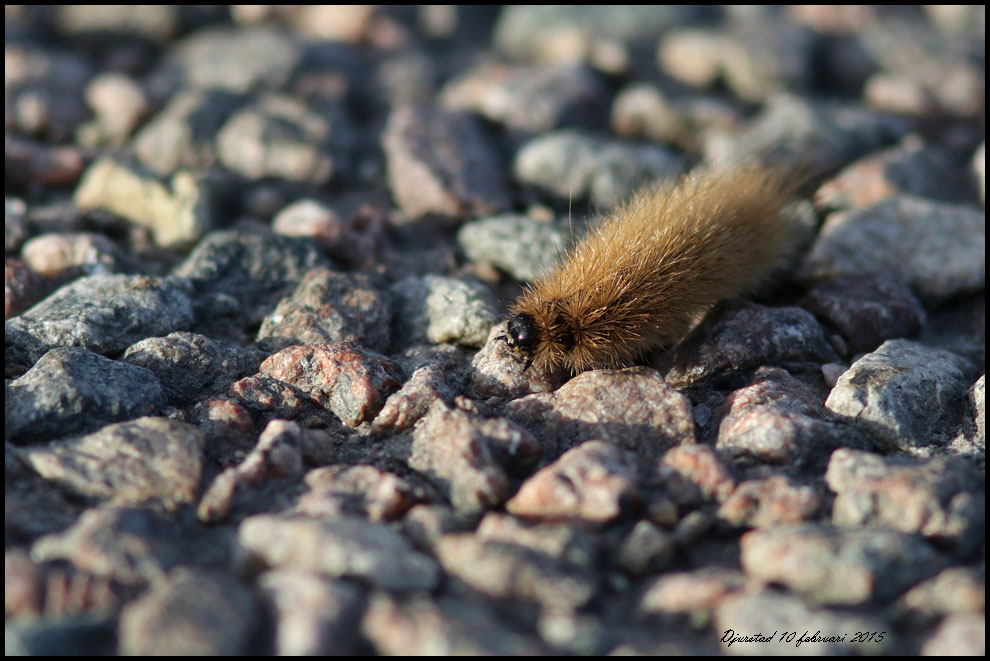 Den här larven kröp omkring på asfalten. Lite tidigt på året väl? |