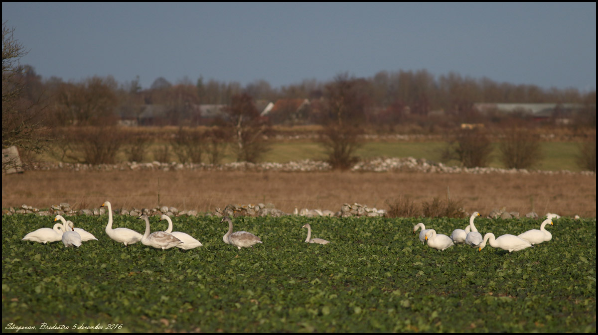 Vid Bredsätra fanns en ganska stor flock med sångsvanar. |