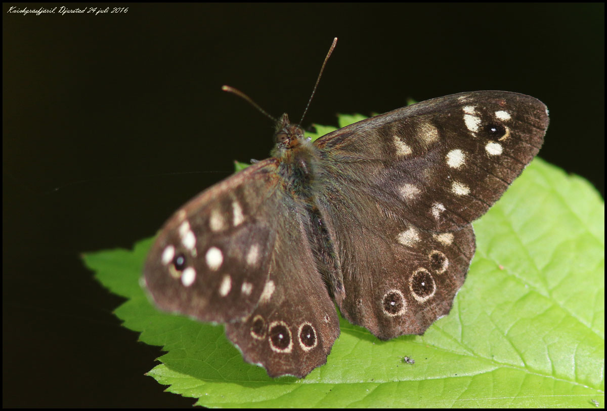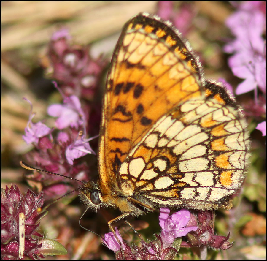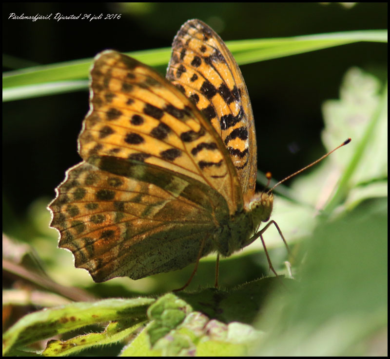 | Den här tyckte jag först var en silverstreckad pärlemorfjäril men bilden visar fläckar på bakvingens undersida som jag inte begriper! |