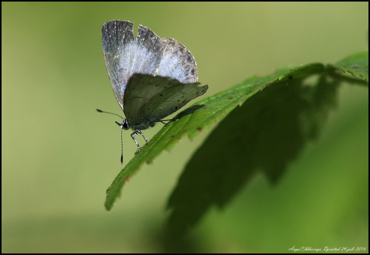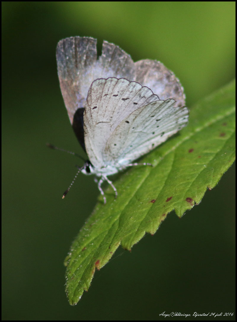 | Det här borde väl vara ängsblåvinge men bestämningen känns inte helt säker. Enligt NRM är fläckarna små och runda men de kan vara "streckformigt förlängda" (se här) |
