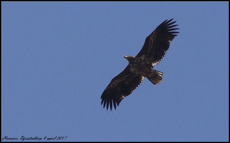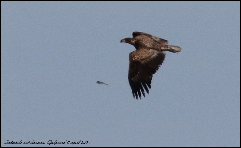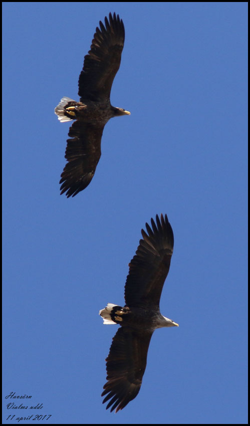 | 11 april. På förmiddagen har vi besökt Vialms udde. På Sillgrund fanns 160 skärfläckor! Över oss seglade tio-tolv havsörnar. |