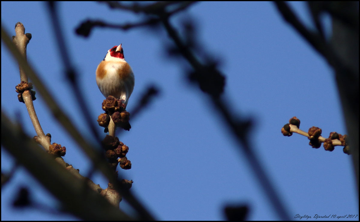 10 april. På kvällen gick vi ner till Djurstads bodar. Flera steglits sjöng och jagade runt vid talldungen halvvägs. |