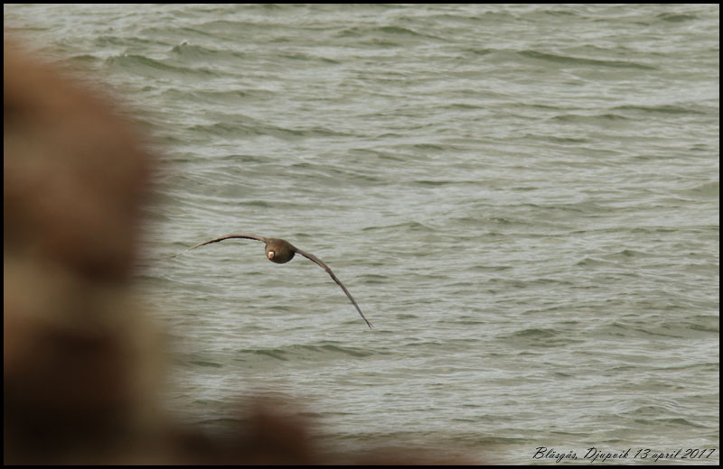 | 13 april. På förmiddagen stod jag över klipporna mellan Djupvik och Bruddesta. Storspov sträckte. |