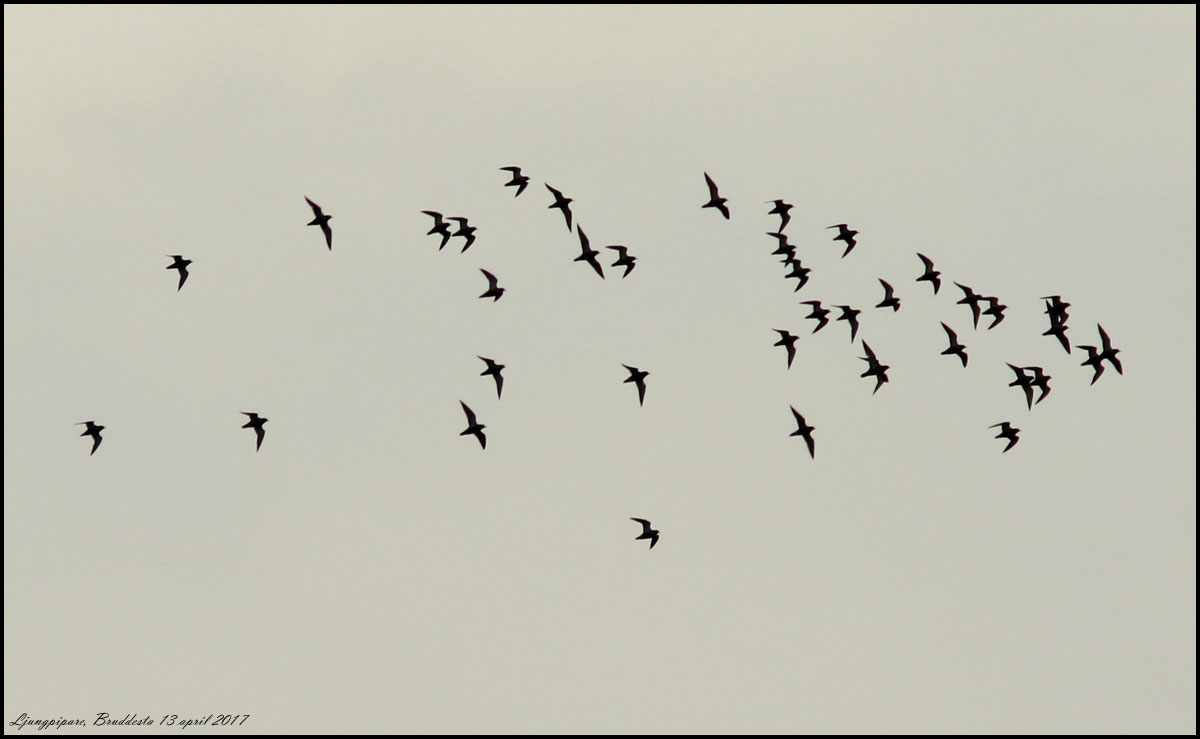 Vid Långkärr flög en flock ljungpipare runt några varv. |