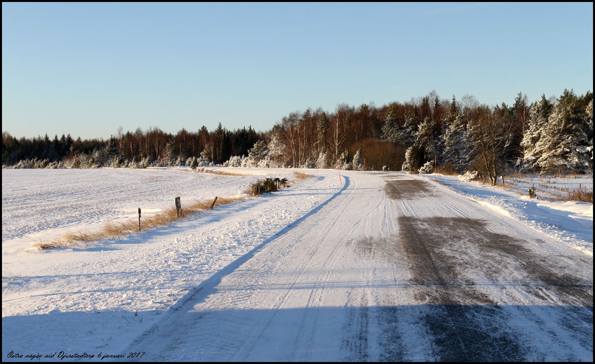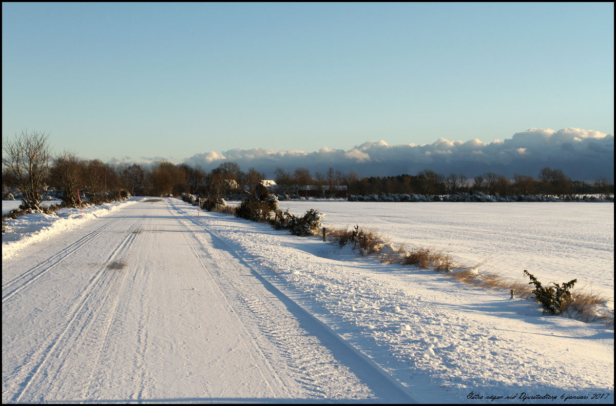 | 6 januari. Vi körde ner till Djupvik i det kalla och klara vädret. Östra vägen vid infarten till Djurstadtorp. | |