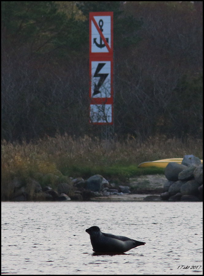 | 17 oktober. Knubbsäl (eller är det gråsäl?) i viken vid Själgrund |