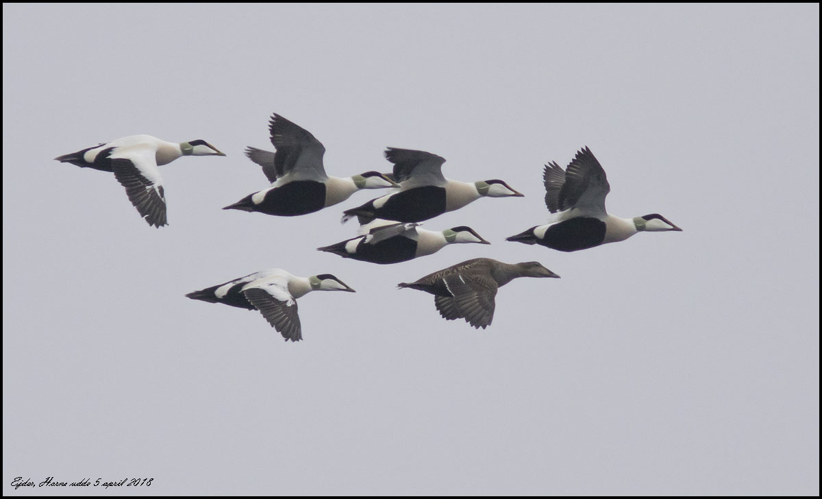 5 april. Vi har spenderat några timmar på Horns udde. Det var inte någon fart på ejdersträcket, drygt 300 ex på 2½ timme |