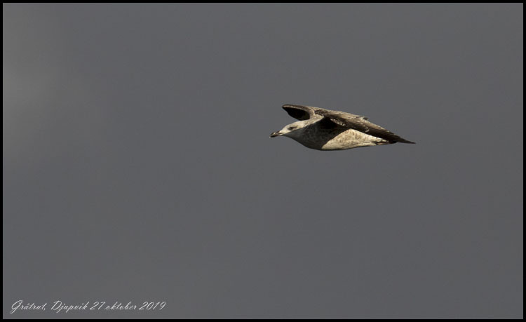 | 27 oktober. Hårda västliga vindar idag som har använts till skådning vid Djupvik. Kraftigt sträck av måsfåglar. Gråtrut. |