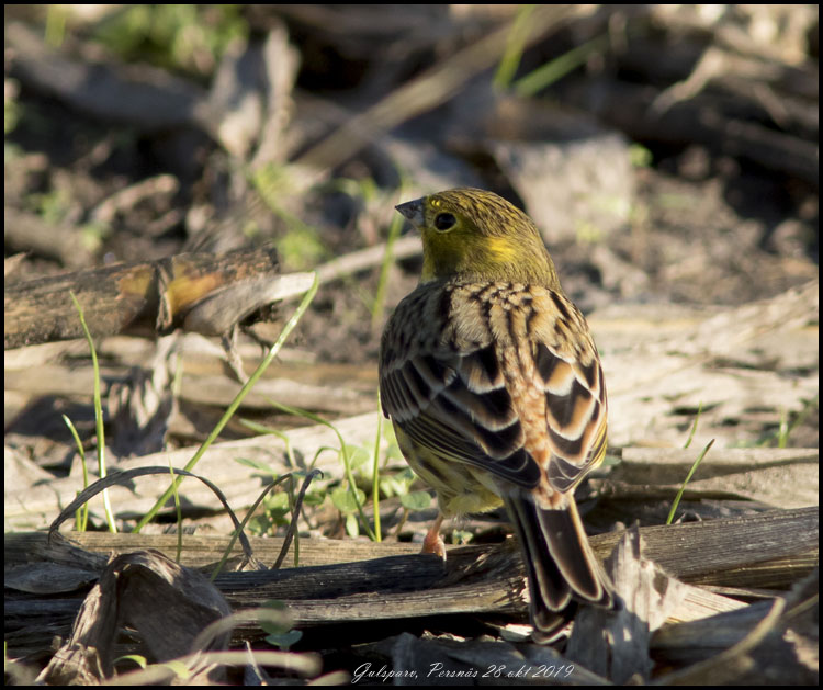 | 28 oktober. Dagens utflykt gick till Persnäs. En gulsparv höll till på en f d majsodling. |