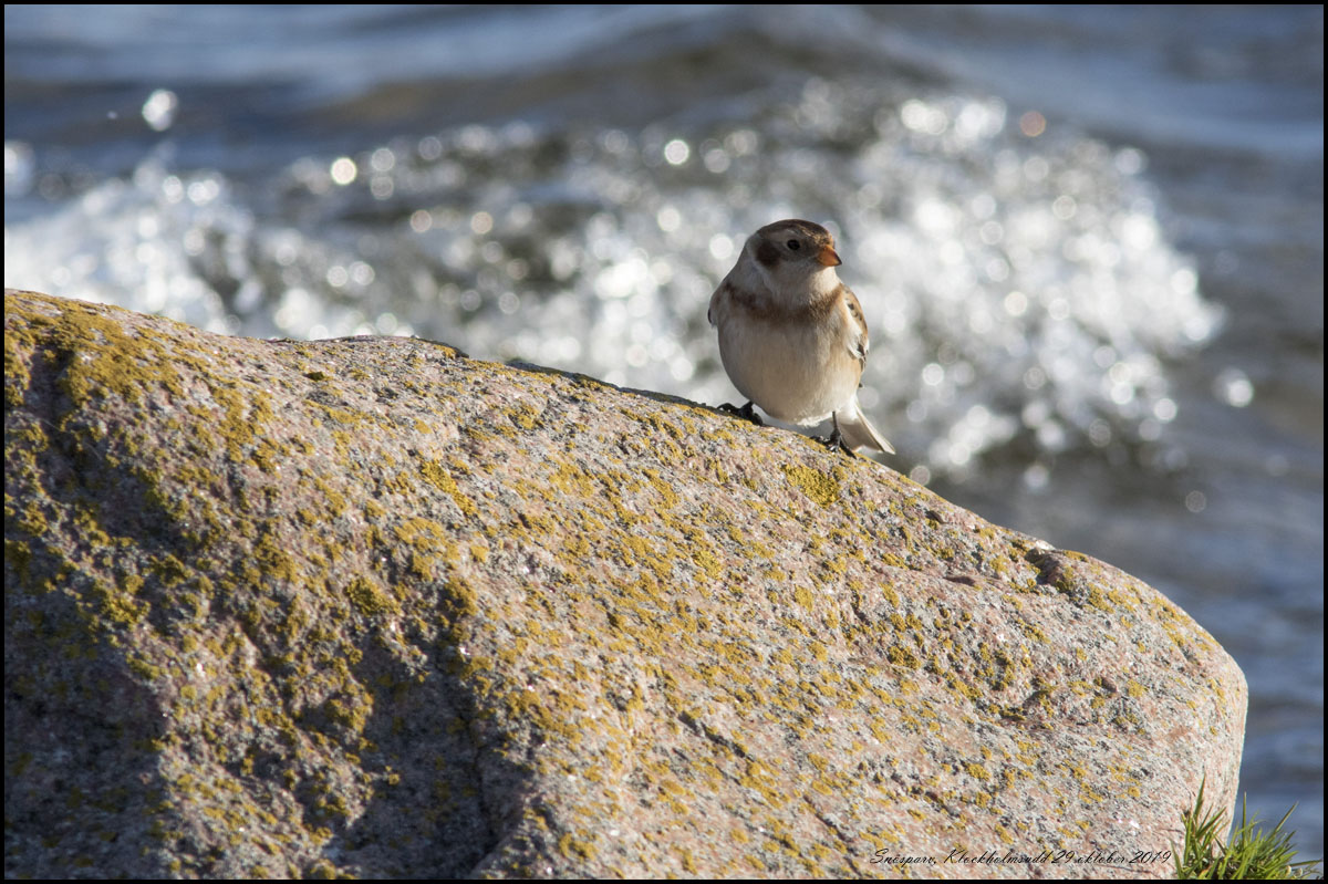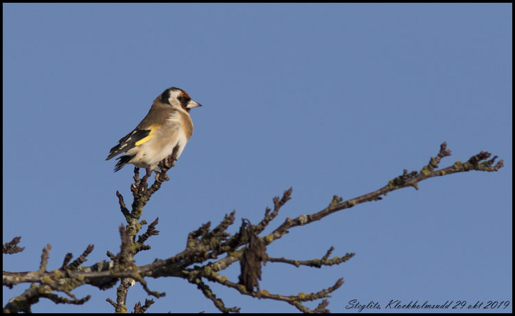 | 29 oktober. Strålande väder idag. Vi har gått på Klockholmsudd och vid Husvalla. En steglits vid Klockholm. |