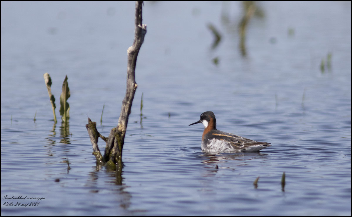 24 maj. Två smalnäbbade simsnäppor upptäcktes i en vattensamling söder om Källa hamn. |