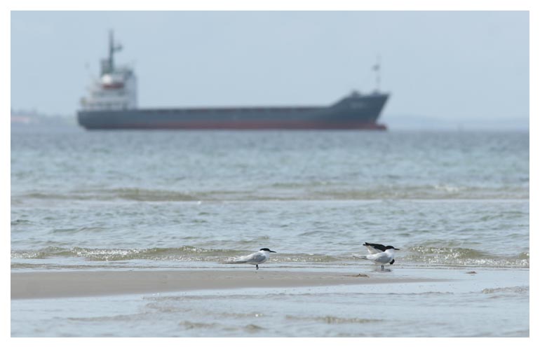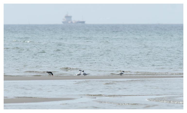 hamnen i Råå. Här fanns tre kentska tärnor. Det starka ljuset gav goda