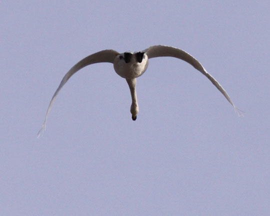 | Den här svanen kom rakt över och det gick väldigt snabbt. Jag gissar att det var en mindre sångsvan men den får gå som obestämd sångsvan. Ser ju rätt kul ut i den här vinkeln. |