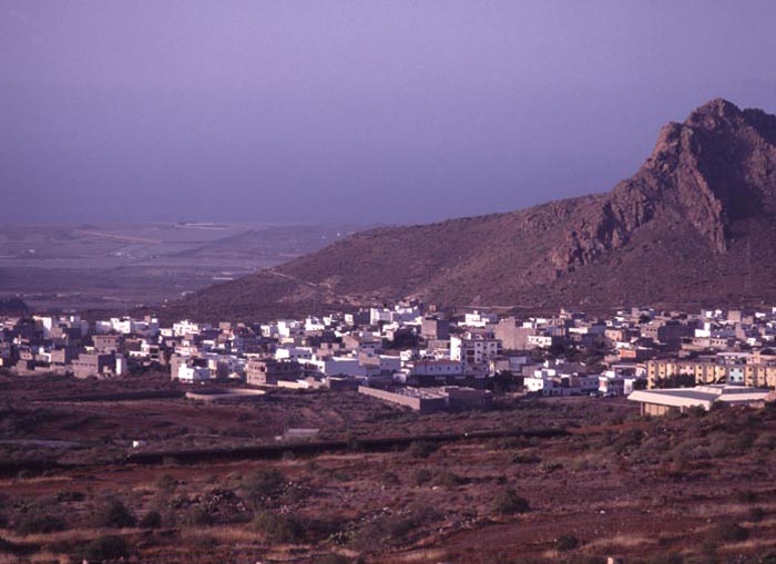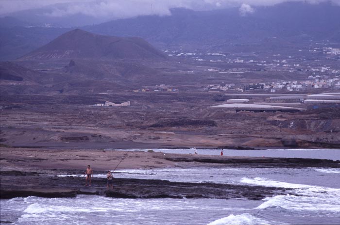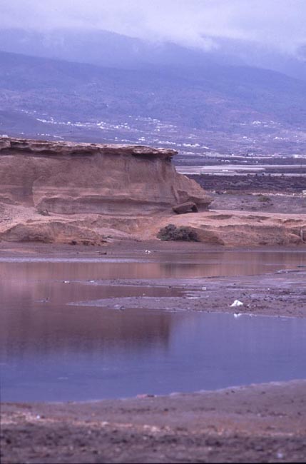 | Den 21 april tog jag bussen till El Medano på öns sydkust. Där besökte jag dammen och det röda berget, Monte Roja. |