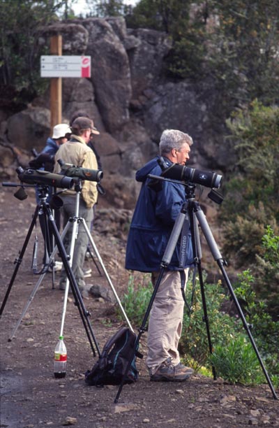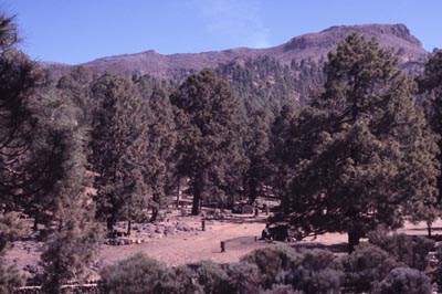 Den 17 april hyrde vi en bil och körde via Vilaflor upp till Teide. Vi fortsatte sedan till städerna Puerto de la Cruz och Icod de los Vinos. Vid Erjos promenerade vi i lagerskogen längs den lilla grusvägen mot Las Portelas. | ![]() Tallskog nordväst om Vilaflor. Vid rastanläggningen Los Lajas längs vägen mot Teide kunde vi se kanariesiska, blåfink, blåmes och större hackspett. |