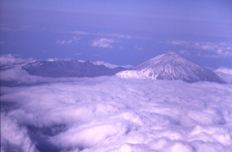 På förmiddagen den 22 april lämnade vi Teneriffa. Från planet fick vi en tjusig vy över Teide. |